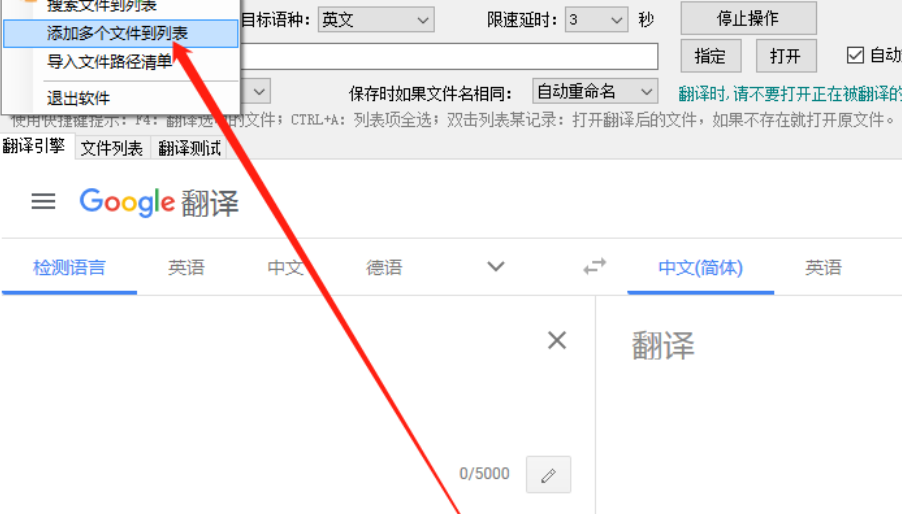 1.首先第一步我们打开软件之后在软件的主界面中点击添加多个文件到列表这个功能,点击之后即可添加要翻译的文件。