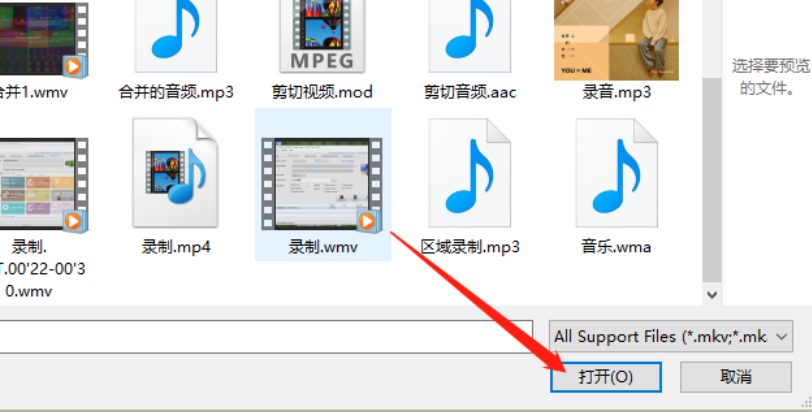 2.点击添加文件按钮之后紧接着就打开选择文件的界面了,在这个界面中我们选中要转换的音频文件之后点击右下角的打开按钮即可。