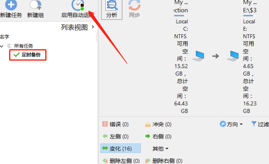 8.设置好自动备份的时间之后,我们回到软件的主界面,然后在界面的任务列表中就可以看到创建好的任务了,最后点击上方的启用自动运行按钮即可。