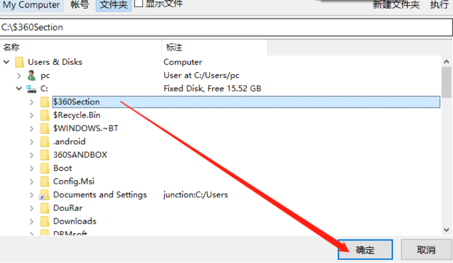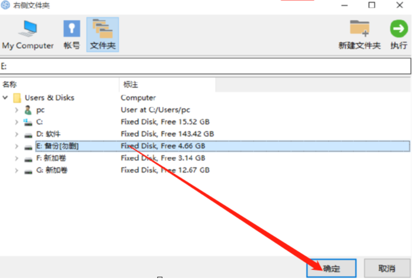5.点击确定按钮之后下一步是选择目标文件夹图标,在原文件夹图标的右边,点击之后在出现的界面中选择备份文件想要储存的位置。