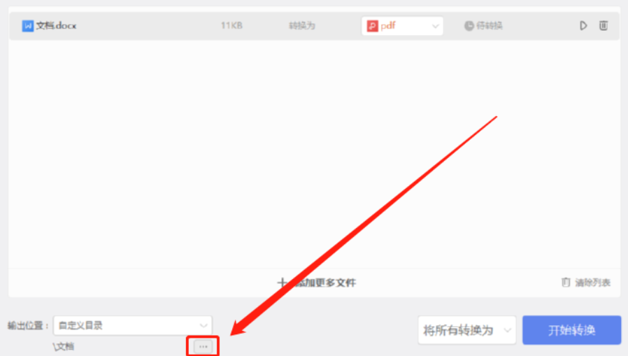 4.需要转换的PDF文件格式选择完成之后,在界面左下角的输出位置处可以自定义选择文件的输出位置,点击三点按钮即可进行选择。