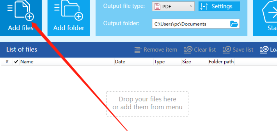 1.首先第一步我们打开软件之后在界面的左上角点击Add Files按钮,点击之后即可添加要转换的jpg图片。
