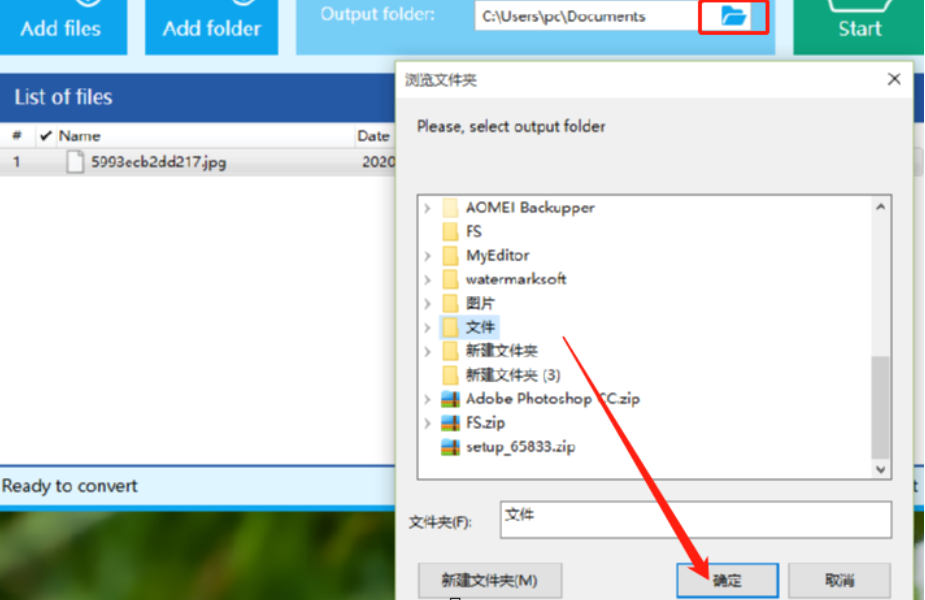 5.设置完成之后我们可以点击输出文件夹旁边的文件夹图标,点击这个图标之后在打开的界面中可以选择文件转换之后的输出位置。