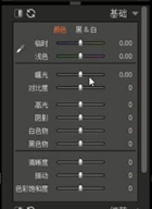 三,要突出色彩的对比度,我们需要在右侧的基础选项中设置对比度和色彩饱和度。照片效果有点偏黄,我们可以通过拖动“浅色”来进行色彩补偿;照片四周的阴影部分整体偏暗。我们也可拖动“阴影”滑块来进行弥补。