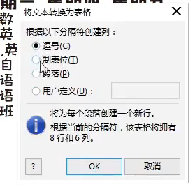 在文本框中输入每一行我们需要的文字就可以啦,但是表格中没一列的文字必须是英文所下的模式才可以生成,通常来说我们的制表符是逗号,但是它也可以是其它的符号。