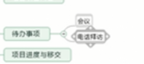 这是一张已经做好了的周计划的思维导图,我们来看一下副主题的内容,一个是待办事项,一个是会议,一个是电话拜访,最后一个是准备明日内容。