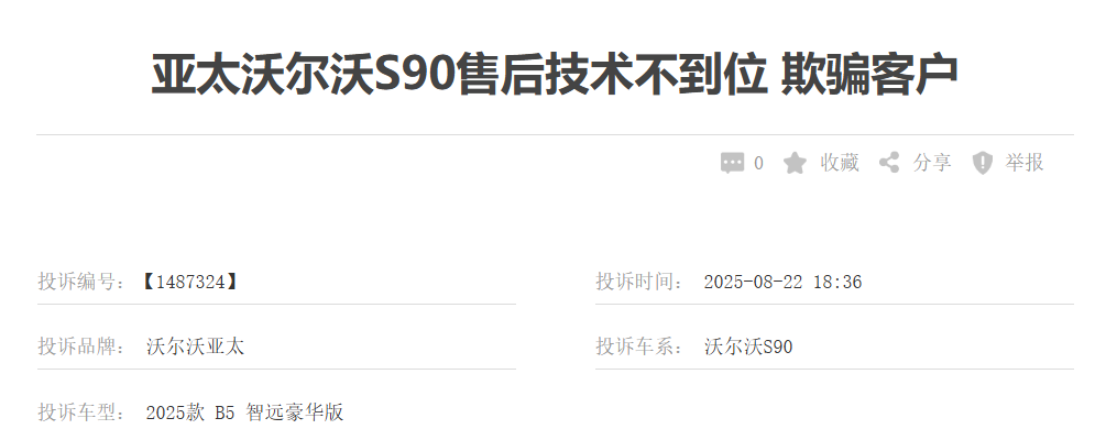 本文所引用的消费者投诉内容,旨在如实呈现车主们遇到的问题,希望能为读者提供一个了解真实案例的窗口。我们转载这些信息,是为了传递更多元的声音和视角,但并不意味着我们完全赞同其所有观点,也无法对其真实性进行逐一核实。如果文章中涉及任何作品内容、版权或其他相关问题,请您在30天内与我们取得联系,我们收到通知后会第一时间进行妥善处理。本站对以上声明保留最终解释权。