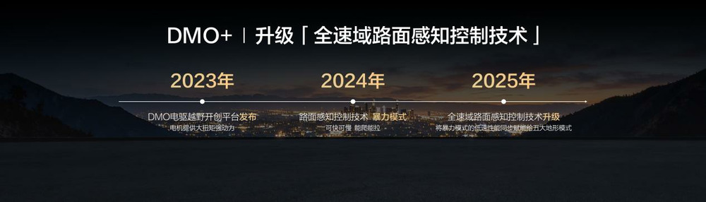 豹5长续航版和豹8大五座版在上市时就搭载了DMO+平台,现有的豹5、豹8用户也将通过OTA升级到这一平台。该平台首次应用了“全速域路面感知控制技术”,在原有的路面感知控制技术基础上进行了“全速域”升级,使得车辆的扭矩输出和精准控制不再受速度和地形等因素的限制。这意味着豹5和豹8不再局限于单一的“暴力模式”,无论是在沙地、泥地还是岩石等各种地形,无论车速如何,车轮的抓地力都将更加稳定和精准,动力输出和驾驶稳定性也将显著提升。这大大降低了越野驾驶的操作门槛,让用户可以更轻松地享受专业的越野体验,无论是玩沙还是爬坡,都能更加自如和安全。