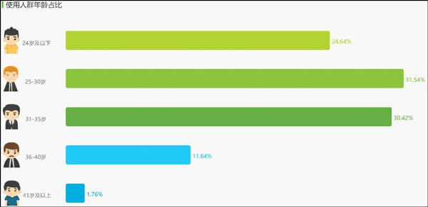 性别比例是产品设计中不可忽视的重要元素,因为男性和女性用户在使用习惯和需求上存在着显著的差异。根据上图的数据显示,这两款产品的用户性别比例呈现出相似的特征,即女性用户占比均未达到三分之一。这种现象并不难理解,因为游戏直播的主要内容为游戏,而女性游戏用户的数量相对较少。同时,直播平台通常以主播的颜值作为吸引观众的重要手段之一,而这一特点对年轻男性的吸引力较大,对女性的吸引力则相对一般。因此,这种平台定位导致了男性用户成为主流用户,数量是女性用户的两倍以上。