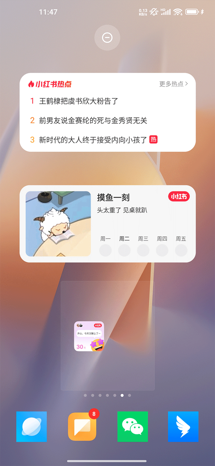 3、接着即可自由在桌面上调节设置小红书的小组件