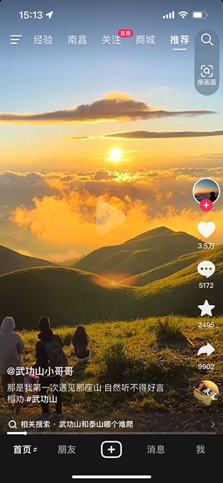 抖音一打开就是直接进入短视频播放页面,它会自动开始播放,用户可以通过滑动翻页找到自己喜欢的视频。