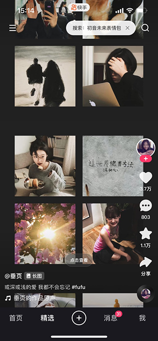 而快手打开后里面的视频内容是按方格排列的,不会直接就开始播放视频,需要我们自己去点击进入,有一点好处就是我们可以优先挑选自己喜欢的观看。
