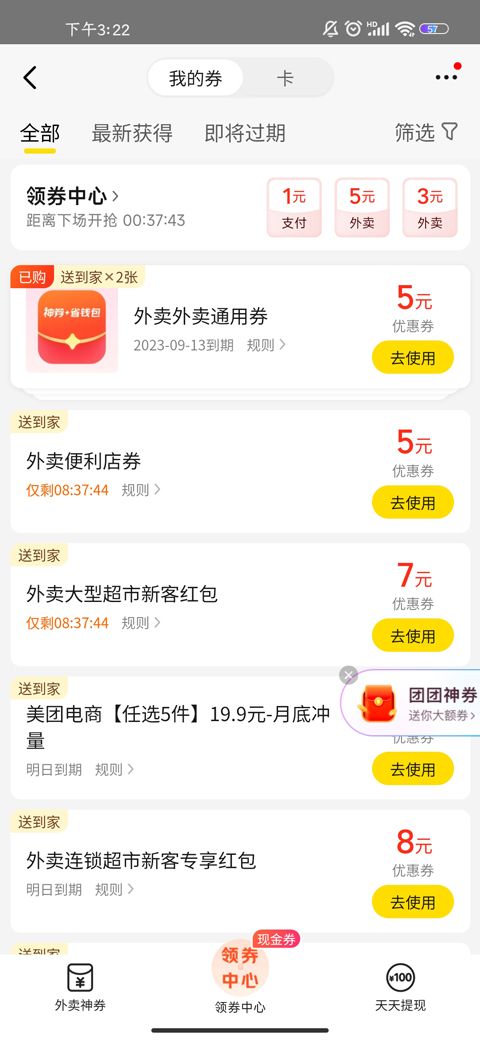 美团的红包礼券在很多平台发放,广告力度打的很大,尤其是新客的满减及各类活动券,基本都是满十五减十块,看得出来是在保障商家利益的同时为顾客的钱包做最大缩减