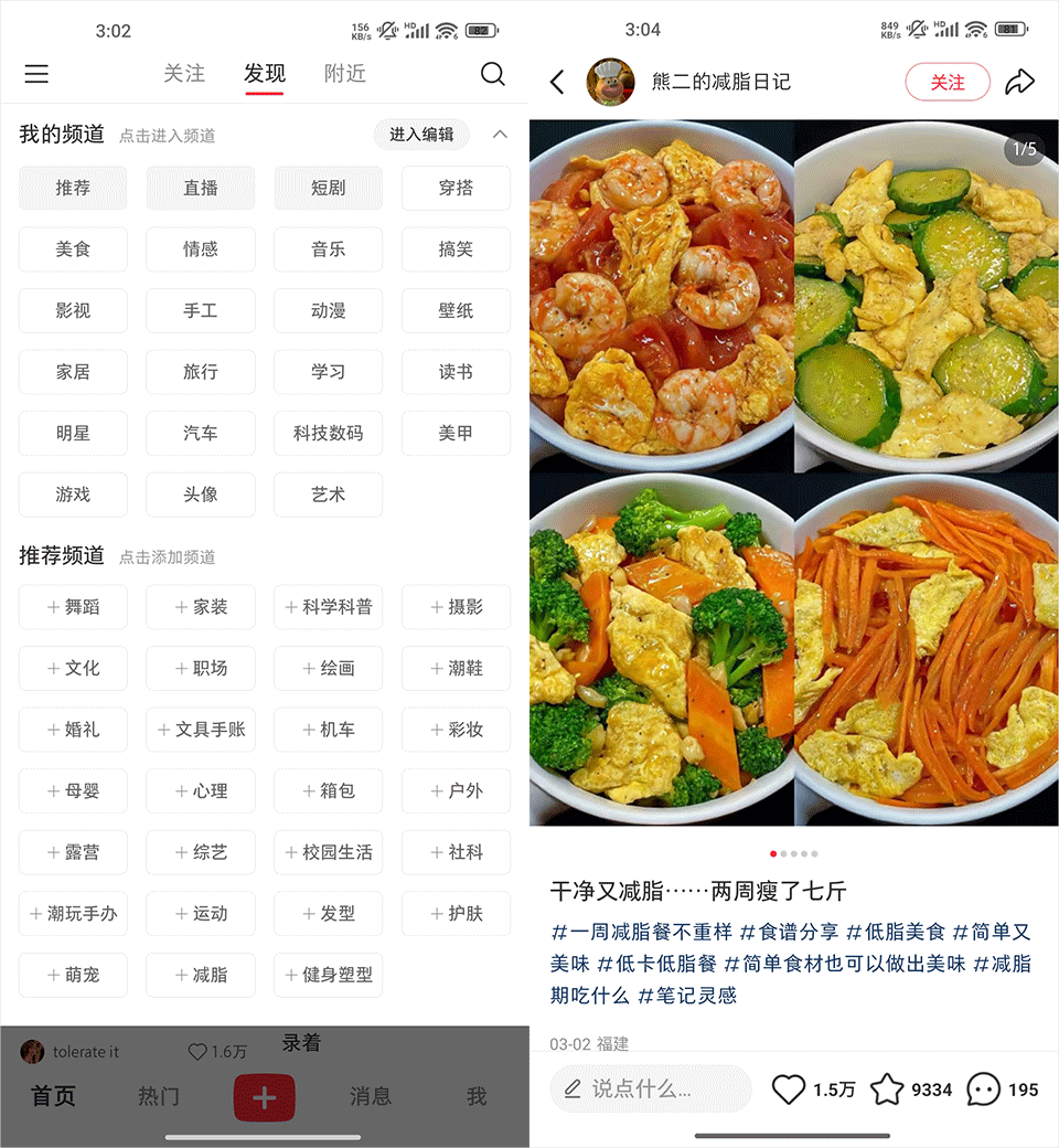 2、知乎和小红书的页面对比