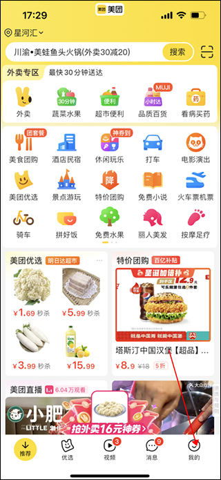 1、 打开美团app,进入到用户界面,点击页面右下角的“我的”按钮;