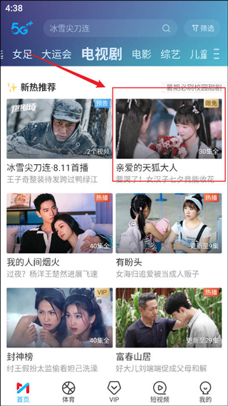 1、在咪咕视频内找到喜欢的视频点击观看