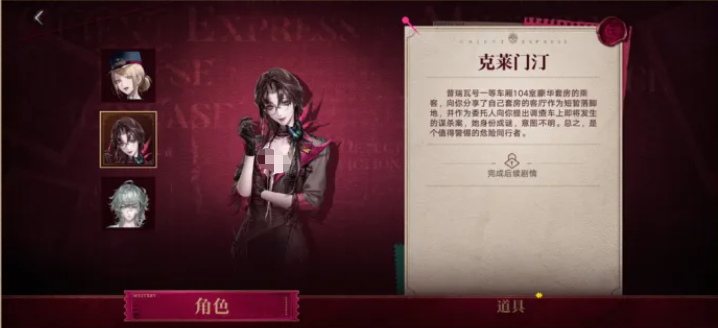 列车导览:在列车导览中,玩家们可以查看自身所处位置,还有列车地图信息,点击照片就能快速前往所属车厢;随身笔录:可查看当前已经获取的角色,还有证物相关信息。