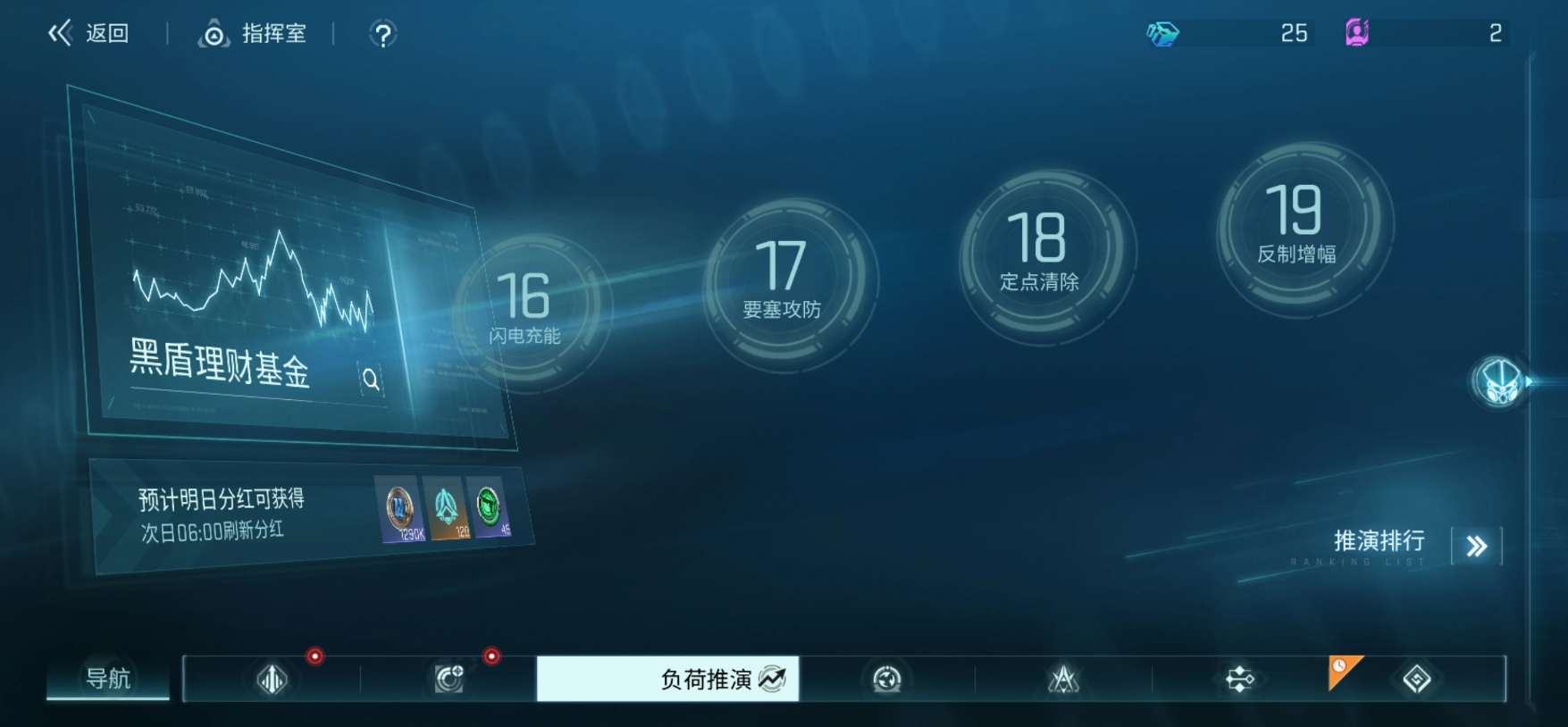 负荷推演是以双境终焉和常驻两种关卡组成,常驻模式有着众多的关卡可取得资源,但是需要玩家们参与火种计划获得足够的模组才能解锁常驻关卡。将所有常驻关卡通关后就可解锁双境终焉,需要挑战蜂王和幽灵蝎两个首领,挑战等级越高的首领获得的积分就越多,积分可用来获得相界晶奖励,两周更新首领和重置排名与积分等。