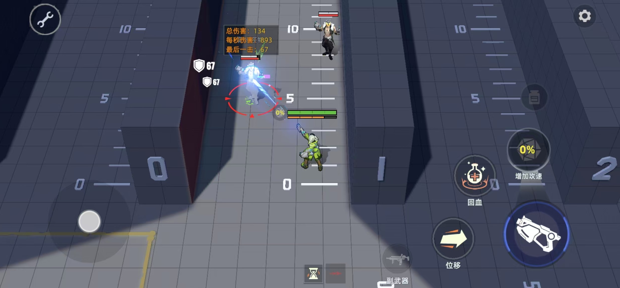 在射击的时候,每次攻击会快速射出六发子弹,攻击过程中无法转向。奥义效果是在12秒内,每次攻击会射出10发子弹,单发子弹伤害会略微降低,在此期间自身造成的伤害降低。虽然看似降低了伤害,但是每次攻击打出10发子弹,在爆发方面绝对是非常可观的,配合上不错的基础攻击能力,可以快速清理掉残血的目标。只是在攻击时无法转向这一点,大家要提前找好输出的角度,利用好场上的地形或者是草丛埋伏敌人,能够做到打满伤害。
