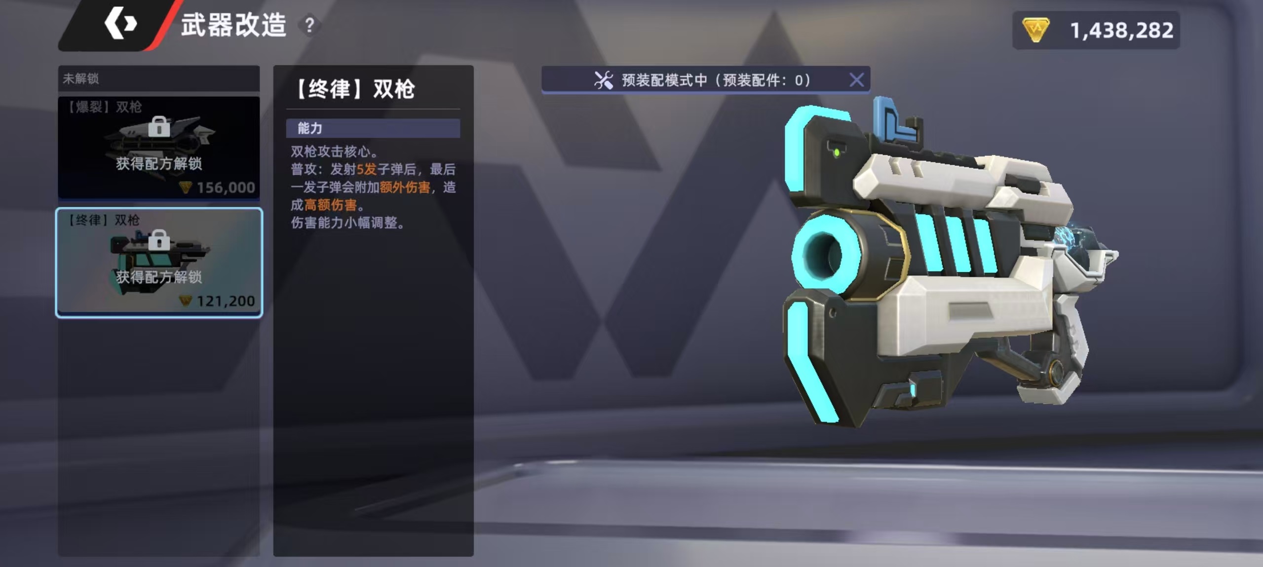 在后续改造的时候,有两种不同的方向,第一种是爆裂双枪,第二个是终律双枪。爆裂伤害特点是普攻时子弹会附加灼烧效果,持续造成灼烧伤害,当灼烧积到三层时会清空层数并引发爆炸,造成额外伤害。终律双枪特点是每发射五发子弹后,最后一发子弹会附加额外伤害。这两种各有特点,小编认为在目前节奏中,终律双枪更强一些,因为爆发更高。那如果是多人开黑一起战斗,有着完善的团队配合,选择爆裂双枪给多个目标都挂上灼烧之后伤害也比较出色。可以提前在训练场中多试用一下,掌握手感。