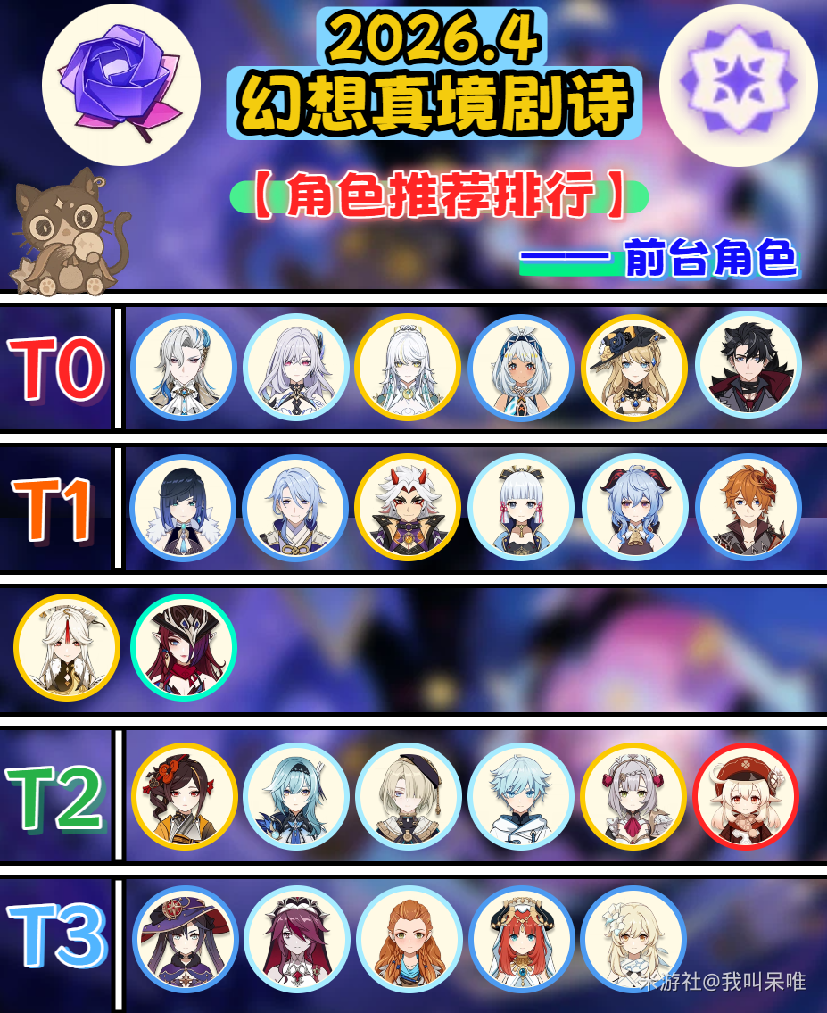 T0:泛用性,辅助能力,挂元素能力中有2项以上非常优秀的角色。