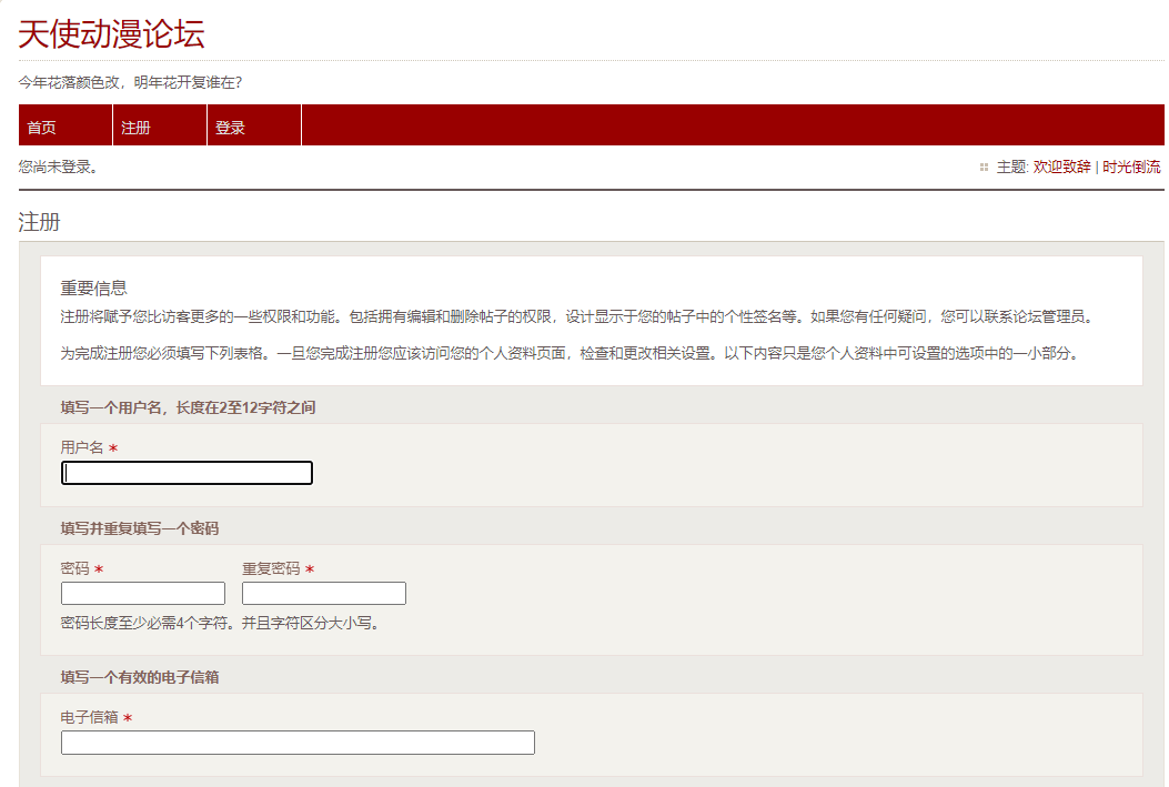 天使动漫论坛可通过网页注册(地址https://www.wzw131.com/6city/bbs/register.php)或官方App完成。注册后需在验证申请版块提交申请以获得完整权限。若收不到验证邮件请检查垃圾箱。部分版区需积分达300分才可访问。