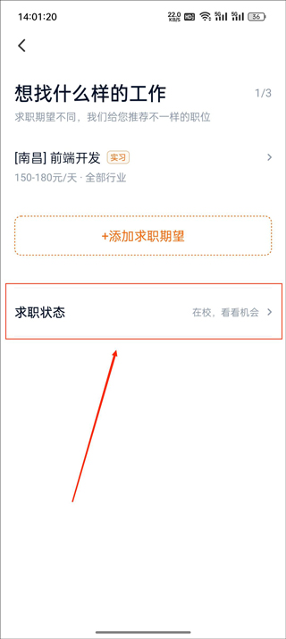 3、紧接着选择【求职状态】
