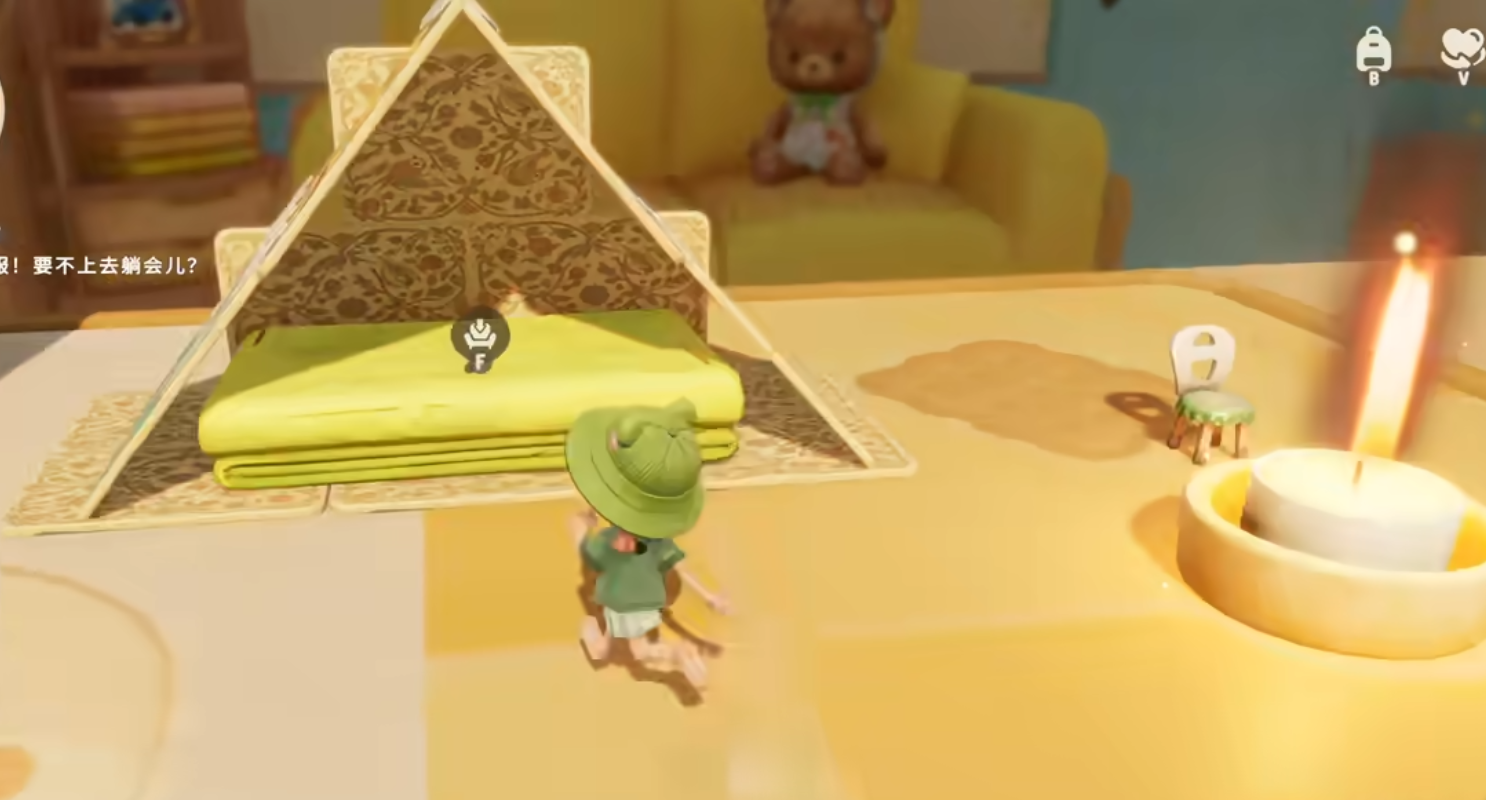 变形枪的具体用法很简单。在探索像是书桌、窗台等场景的时候,将准星瞄准原来那些巨大的日常物品,使用缩小枪发射,准星射满后物体会瞬间吸收并缩小,然后转化在背包中。在游戏世界中,你可以把缩小的巧克力棒变成建造房屋的横梁,用纸牌搭出一座小小的帐篷,还能在帐篷里美美的睡一觉。